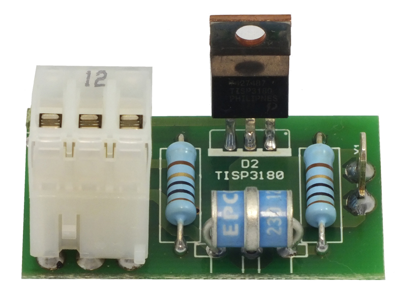Überspannungsschutz für analoge FWM1 (Anschluss an das Telefonnetz). Dieser Überspannungsschutz kann bei zu großer Belastung z.B. Blitzschlag zerstört werden. Dieses dient dem Schutz der Elektronik. Der Überspannungsschutz kann ohne großen Aufwand ersetzt werden. Hierbei ist zu beachten, dass der Schutzleiter (PE) angeschlossen wird, da der Schutz ansonsten unwirksam ist !