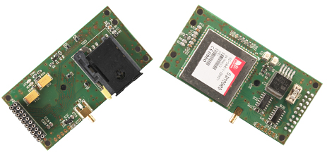 Analoges Modem mit Adapterplatine zum Einbau in das FWM1. Die Modemkomponente ist auf eine Adapterplatine gesteckt, die wiederum mittels Flachkabel mit der Grundplatine des FWM1