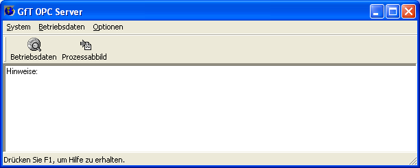 Der GfT OPC Server ermöglicht die Anbindung externer Programme an das GfT Leitsystem. Über die OPC Schnittstelle können die internen Daten des GfT Leitsystems (aktueller Zustand und historische Messdaten der angekoppelten FWM1) Fremdprogrammen zur Verfügung gestellt werden, die als OPC-Client arbeiten können (WinCC, Acron, etc.).