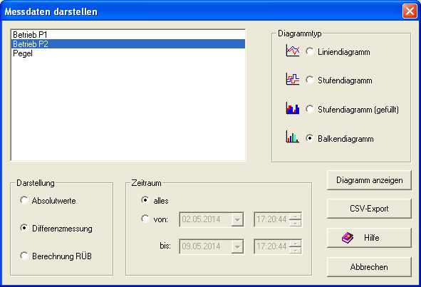 Die Konfigurationssoftware erlaubt zusätzlich die Anzeige eines aktuellen Prozessabbildes (nach Verbindungsaufbau), das Auslesen und Darstellen des Fehlerspeichers des FWM1 sowie das Auslesen und Darstellen der historischen Daten (Messdaten) des FWM1. Ein Excel Export (CSV) der historischen Daten ist ebenfalls möglich.